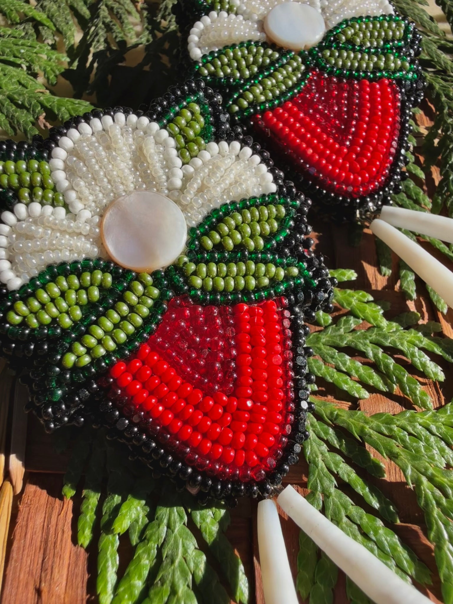These Beading Hearts Flat-Stitched Strawberry Earrings are heirloom pieces meant to be gifted and passed down from generation to generation. These beaded earrings are handmade by one person over approximately a span of 12 hours.